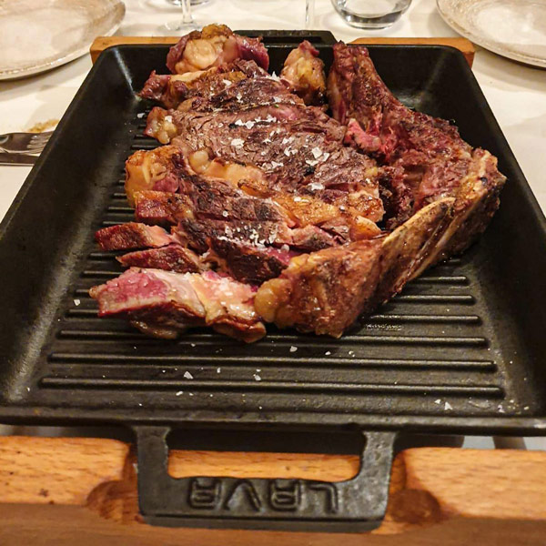Algunos de los platos que podemos degustar en la terraza de Arrabal son: alcachofas confitadísimas a la plancha, calamares estilo Arrabal y ali oli y sardina ahumada en Josper con pimientos y pan sardo, entre los entrantes; y secreto ibérico a la brasa con sus pimientos, merluza a baja temperatura sobre crema de patata y ajada gallega o chuletón de vaca vieja madurado 45 días, entre los principales. De postre, macedonia de mil frutas, sorbete de maracuyá al vodka o tarta de queso fluido al horno.
