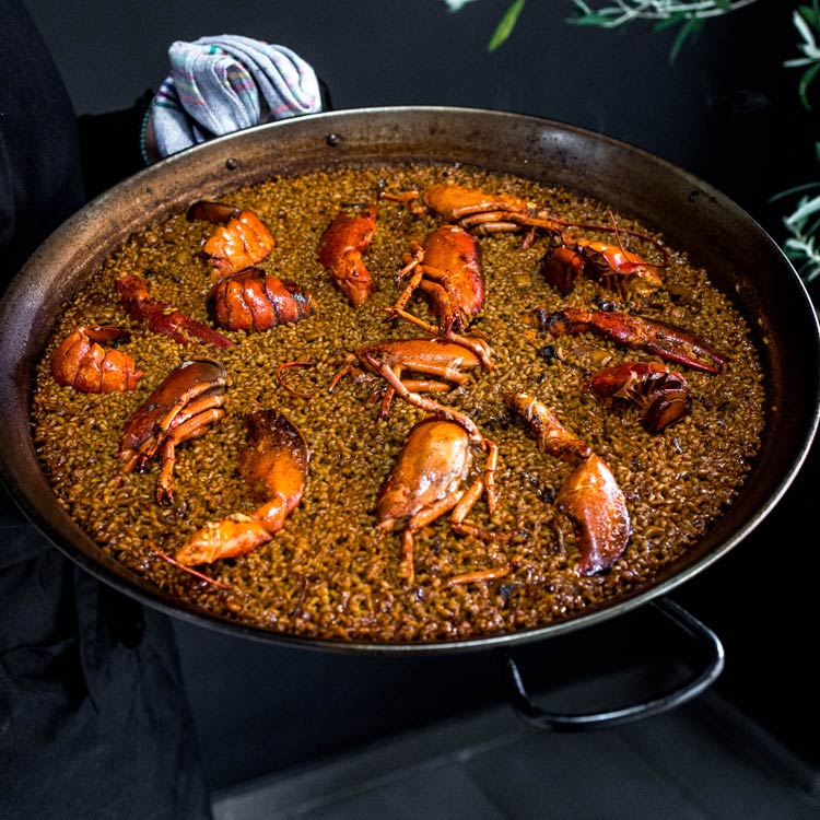 Arroz Bombita junto a un bogavante fresco, un plato 10