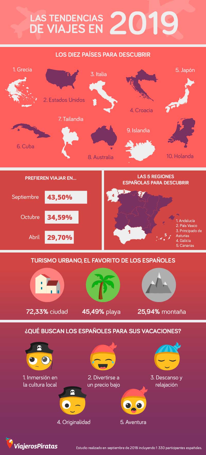 Viajar más a menudo o conocer algún lugar nuevo, seguro estuvieron entre los propósitos que muchos se trazaron este año nuevo. Por ello, ViajerosPiratas, el portal experto en ofertas de viajes, realizó un estudio en el que participaron más de 1.300 españoles [i], para saber cuáles son las tendencias viajeras de este año y cómo pretenden cumplir los españoles esos propósitos wanderlust.