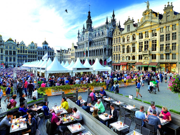 La gran Plaza forma parte del Patrimonio de la Humanidad de la Unesco. El lugar alberga algunos de los edificios más importantes de la ciudad como son el Ayuntamiento y la Casa del rey y está repleta de buenos restaurantes donde el visitante puede degustar algunas de las exquisiteces gastronómicas locales como sus famosas Frites (patatas fritas) y sus deliciosos Gofres.