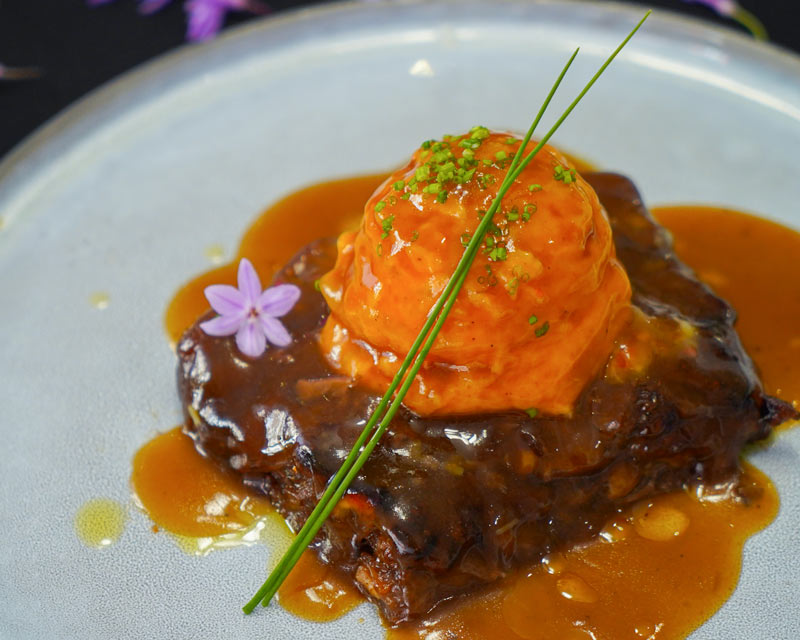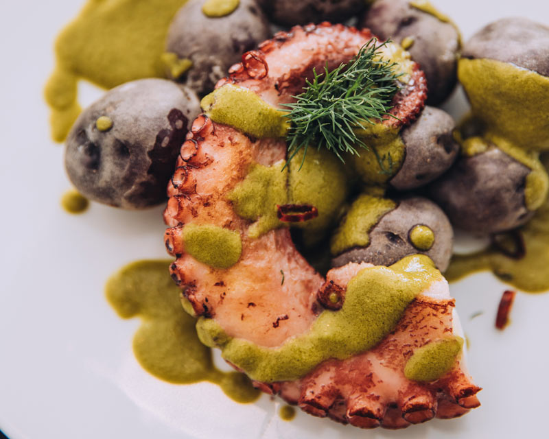 De esta manera en su carta encontramos platos tales como: estofado de seta Shiitake con parmentier a la tartufata y huevo de corral a baja temperatura, aguacate roll relleno de tartar de salmón noruego macerado con fruta de la pasión o ensaladilla cremosa con suave ali oli de ajo negro y ventresca de atún confitada; entre los entrantes diseñados en raciones perfectas para compartir. Como principales, brownie de rabo de toro, brocheta de rape y verduritas, o arroz del señoret con ali oli, entre otros.