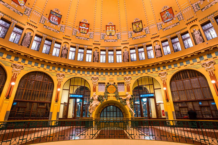 Que hoy día sea el mayor monumento Art Nouveau de la capital se debe al arquitecto Josef Fanta, quien se esmeró tanto en su aspecto exterior como en el interior. De hecho, la cafetería Fanta, con una bellísima cúpula modernista, es una visita muy recomendable en cualquier viaje a Praga. Otro punto obligado de visita es el primer andén, donde se sitúa el conjunto escultórico de Sir Nicholas George Winton con dos niños. Este filántropo, y corredor de bolsa británico, se ha ganado un lugar de honor, ya que salvó a 669 niños, muchos de ellos judíos, enviándolos en tren a Inglaterra en 1939.