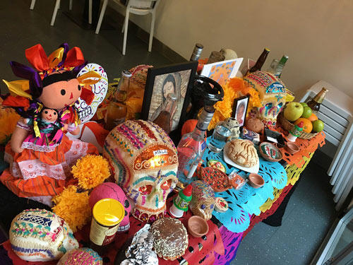 El día de los muertos en México es una celebración única de la vida que une al país el 31 de octubre (día de las almas jóvenes), el 1 de noviembre (día de los Santos) y el 2 de noviembre (día de las almas). Siguiendo esta tradición y para honrar a sus antepasados el restaurante Mestizo colocará un altar en se quemará incienso en braserillos de barro cocido, lo decorarán con papeles de colores naranja y morado, con velas y flores de caléndulas. También con imágenes cristianas: crucifijo, la virgen de Guadalupe, pequeñas figuritas de ataúdes y cráneos de azúcar que los niños cambian con sus amigos o cráneos de caramelo para las almas jóvenes de niños difuntos vuelven a la tierra el 31 de octubre.