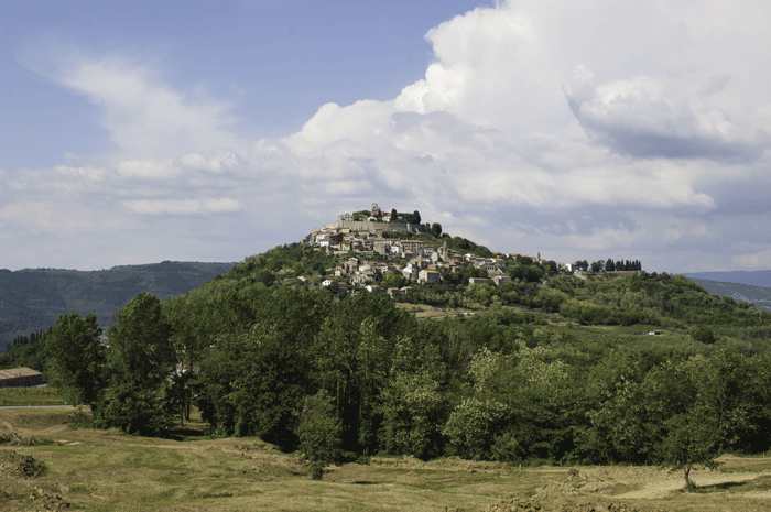 Motovun, otro pueblecito en lo alto de la colina, a unos 300m sobre el nivel del mar, destaca porque cuando te vas acercando a él en coche lo reconoces por que en el punto más alto ves la silueta de su torre veneciana. El paseo hasta la cima es precioso pero la vista que le ofrece del paisaje es si cabe aún mejor, campos, viñedos, y sobretodo el Bosque de Motovun, que es el hábitat de las tan preciadas trufas, donde en verano y a principios del otoño crecen las negras, y a finales del otoño y en invierno crecen las blancas.