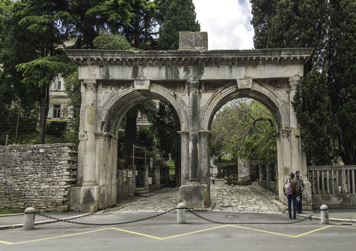 Otros monumentos romanos que se pueden visitar son el Arco de Triunfo de los Sergios o también llamada Puerta de oro, construido entre el 29 y 27 a. C. Este arco de estilo corintio con influencias helenísticas es un punto de encuentro en la ciudad y a su lado se encuentra la zona de compras.
