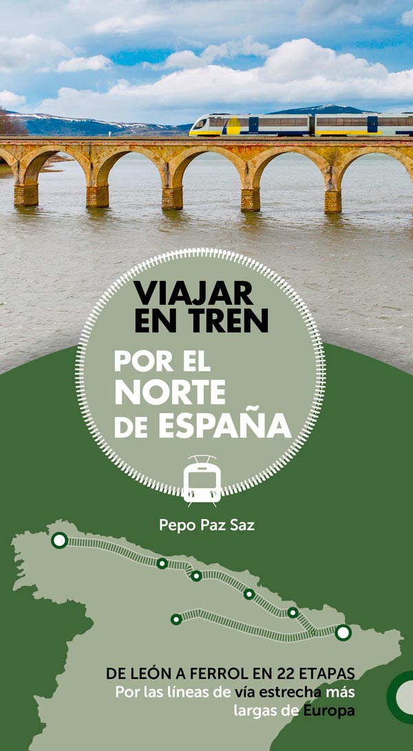Viajar en tren por el norte de España, del periodista y escritor Pepo Paz Saz, es la guía definitiva para viajar por la red de ancho métrico (popularmente conocida como vía estrecha) más extensa de Europa: cerca de 1.300 km distribuidos por las comunidades autónomas y provincias de la cornisa cantábrica (desde Castilla y León hasta Galicia, pasando por el País Vasco, Cantabria y el Principado de Asturias). O lo que es lo mismo, de León a Palencia, Burgos, Cantabria, Vizcaya, Guipúzcoa, Asturias, Lugo y La Coruña; o viceversa.