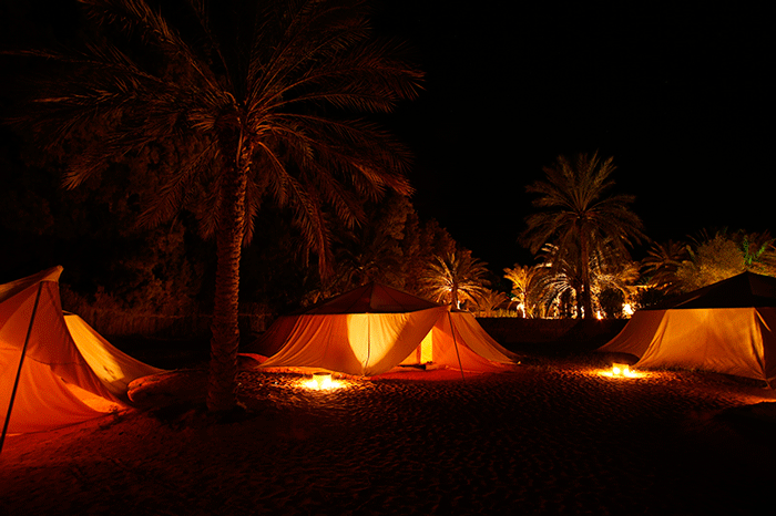 La cultura de los beduinos se puede descubrir de primera mano pasando una noche al raso en el Sahara. El Campamento Zmela se encuentra rodeado de dunas en la puerta del Grand Erg Oriental, sumergido en la calma más absoluta, ofreciendo una atmósfera perfecta a aquellos que buscan paz y tranquilidad bajo un límpido cielo estrellado. El personal cuida todos los detalles para asegurar el confort y gracias a la cocina tradicional los viajeros se sentirán como auténticos habitantes del desierto.