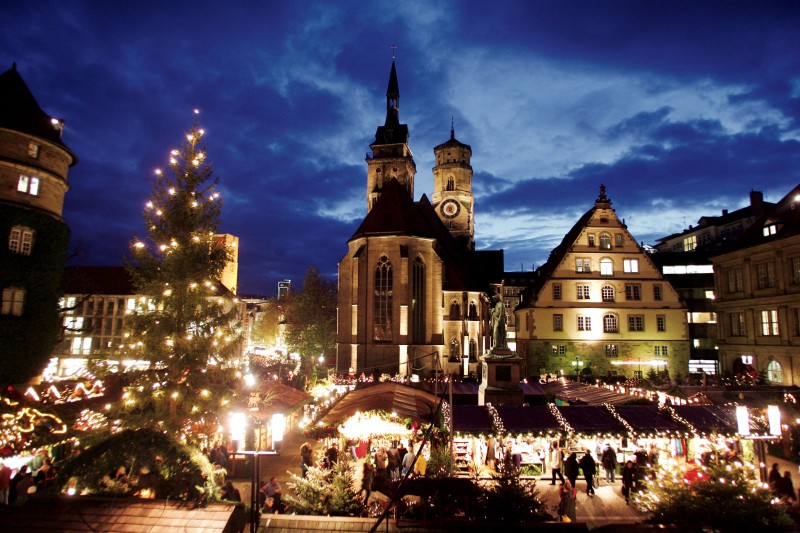 En Navidad Stuttgarthuele a canela y vainilla, sobre todo en su gran Mercado, donde no faltan delicias culinarias como las castañas asadas, el Lebkuchen (un dulce navideño típico en Alemania), las almendras garrapiñadas, las especialidades regionales, el Hutzelbrot (pan de fruta y frutos secos), las salchichas asadas o el tradicional Glühwein(vino caliente con especias). Es uno de los mercados más antiguos, más grandes y más bonitos de Europa. Cuenta con más de 250 puestos bellamente decorados y todos los festivos de Adviento se ofrecen conciertos en el patio interior del antiguo palacio.