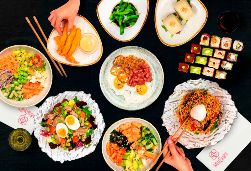 En la carta de Miss Sushi se pueden encontrar opciones para todos los gustos y necesidades elaboradas en el momento con ingredientes de gran calidad como el salmón noruego o el atún rojo de Almadraba procedente de Barbate, Cádiz.