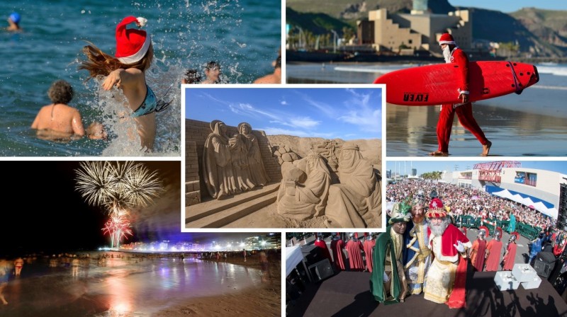 Palmas de Gran Canaria Las Palmas de Gran Canaria siempre ofrece una Navidad singular, en la que cabe la postal en el Belén de Arena, la Nochevieja en la playa o una festiva Noche de Reyes.
