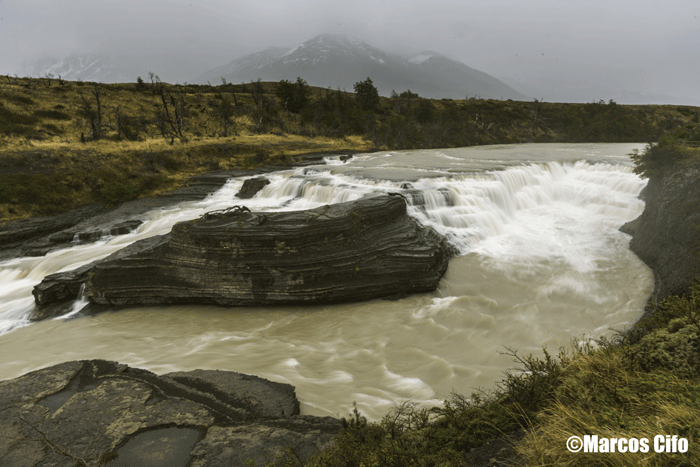 El Salto Grande o Salto del Paine es una cascada desde la que se pueden observar Los Cuernos en la lejanía y por donde pasa el río que comparte nombre con la cordillera: el Paine, del vocablo aonikenk «painé» (‘azul’).