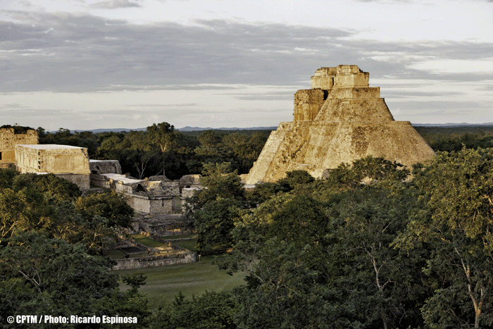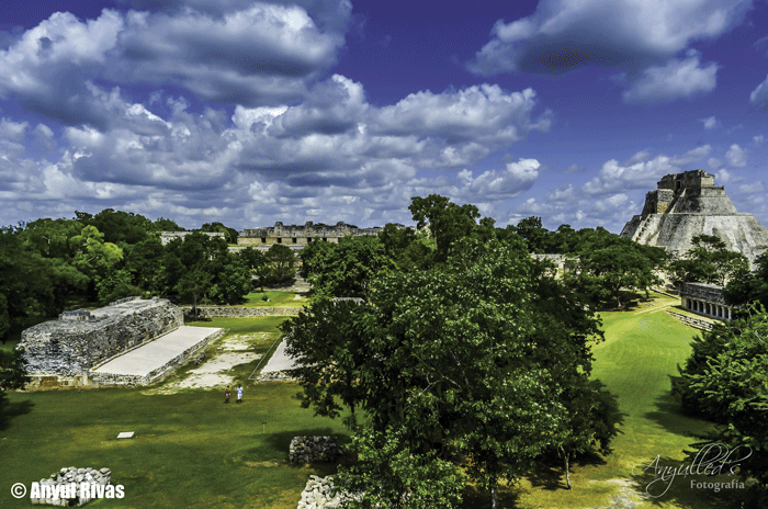 En un terreno montañoso y en plena selva, Uxmal es una de las ciudades antiguas más pintorescas en la región Puuc, que significa ‘colinas’ en el maya yucateco. Declarado Patrimonio Mundial de la Humanidad, fue uno de los asentamientos mayas más importantes en Yucatán. Aunque a diferencia de otros lugares, este carecía de fuentes naturales de agua y, es por este motivo que el dios de la lluvia, Chaac, era especialmente venerado. Las ruinas de Uxmal albergan una población de enormes iguanas por lo que es habitual encontrárselas reptando por los antiguos templos.