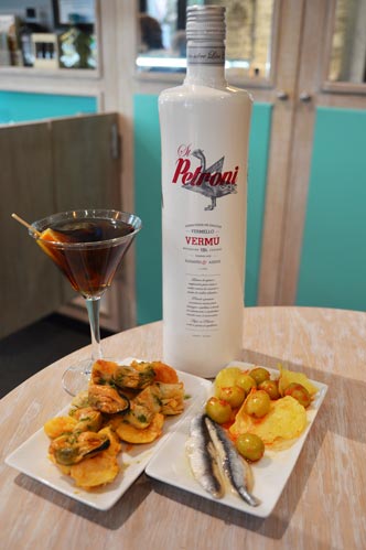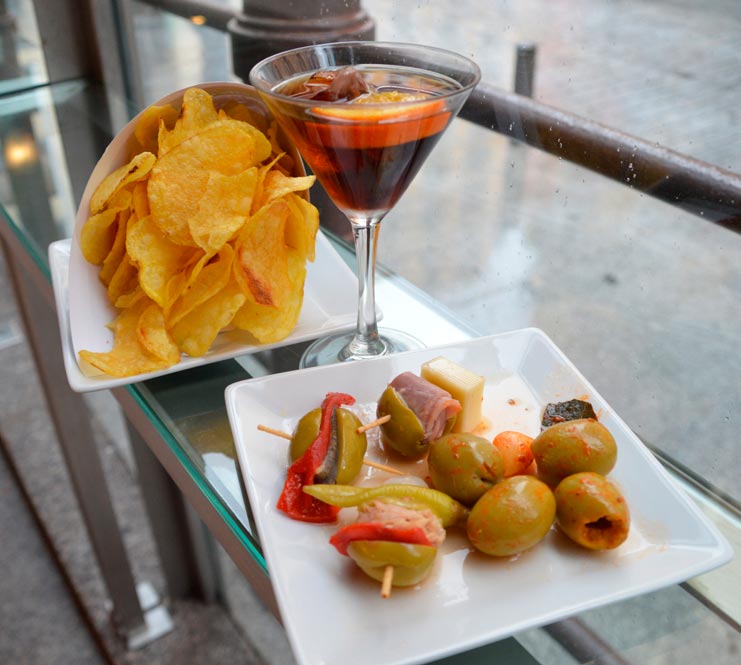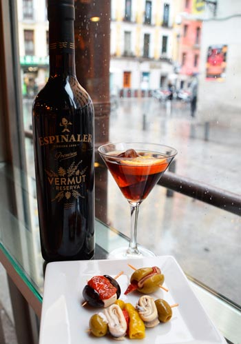 La Hora del Vermut (Mercado de San Miguel y Calle Fernán González, 48) os propone un viaje a través de vermut y de España.