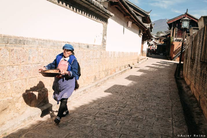 Lijiang, la capital de la minoría étnica naxi, es una hermosa ciudad, a los pies de la meseta tibetana, conformada por un histórico pero muy reconstruido entramado de calles de piedra, edificios de madera y canales de agua, que la convierten, como a Dali, en un destino muy solicitado por los turistas chinos, que acuden en masa al norte de Yunnan, para conocer esa otra ciudad estrella, a la que en los folletos turísticos se la denomina como la Venecia china. A unos dos mil quinientos metros de altitud, Lijiang constituye el más popular lugar de peregrinaje para los chinos que desean, en verano, alejarse del calor. Repleta de restaurantes, bares de copas y tiendas de suvenires, acoge durante todo el año a multitud de turistas nacionales aunque, a pesar de ello, es muy agradable. De gran belleza, su casco antiguo está surcado por canales, de ahí su sobrenombre propagandístico, cuyas aguas brotan del estanque del Dragón Negro, un lago que se nutre de la majestuosa Montaña del Dragón de Jade y Nieve, que refleja en sus aguas buena parte de sus más de cinco mil quinientos metros de altura.